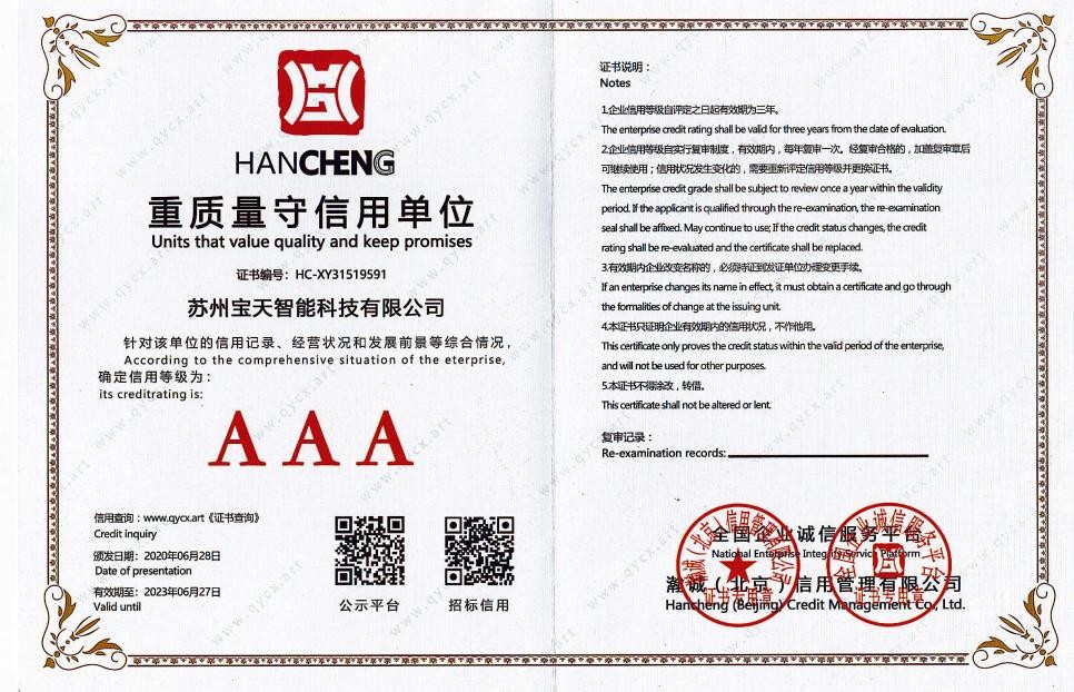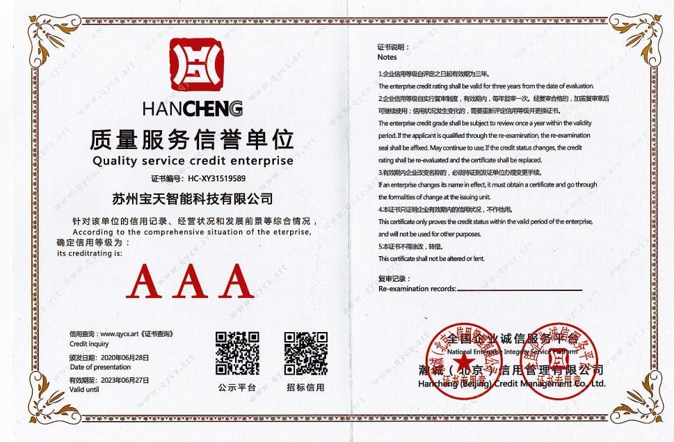 蘇州寶天智能科技有限公司,專業從事廠房、辦公智能化、信息化、安防智能化系統的實施。有數名本專業執業人員,公司實行細致的項目前期溝通、規劃,負責的項目管理、過程控制,良好友善的售后服務,多年來成功實施了眾多智能化、信息化、安防等項目。